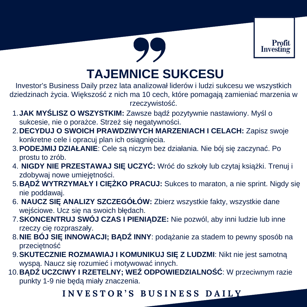 Dzisiejszy cytat to zbiór bardzo życiowych 10 zasad postepowania, jeżeli chce się osiągnąć sukces, wg Investor’s Business Daily, amerykańskiego portalu zajmującego się rynkiem akcji.