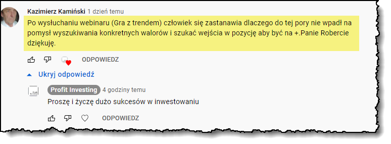 ● A jeżeli Ty chciałbyś wziąć udział w kolejnym takim wydarzeniu i chcesz dowiedzieć się jak sam możesz inwestować z Trendem, jedną ze skuteczniejszych technik inwestycyjnych dla Inwestorów Indywidualnych, i poznać szczegóły mojej gry z trendem to zapraszam na bezpłatny webinar, na którym wszystko omawiam, pokazując m.in. 5 obszarów jakie należy w tym zakresie opanować. Zapisz się na niego poniżej. Webinar odbędzie się już za kilka dni: http://bit.ly/-webinar-trend